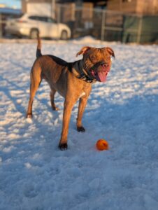 Fred is sweet young playful dog with tons of energy. He needs daily exercise and mental stimulation. He is a super chewer and will need tough toys.